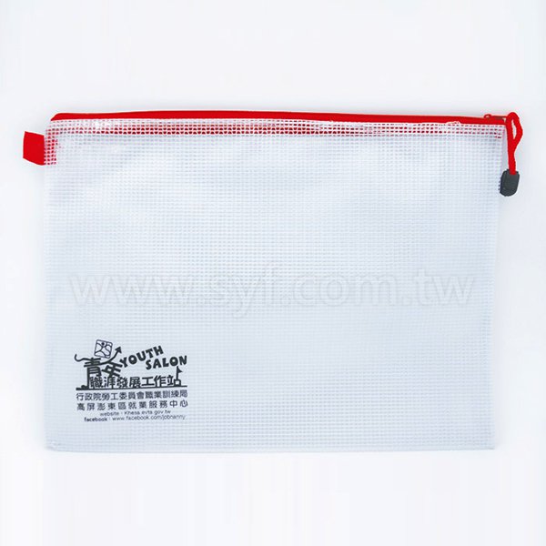 客製拉鍊袋-PVC網格W34xH24cm-單面單色印刷