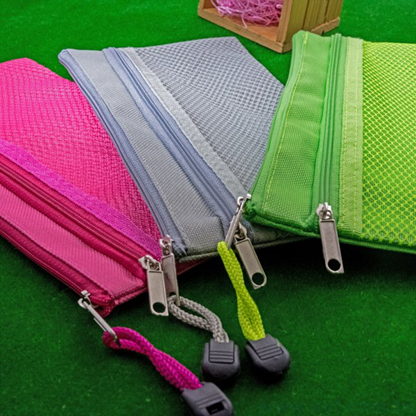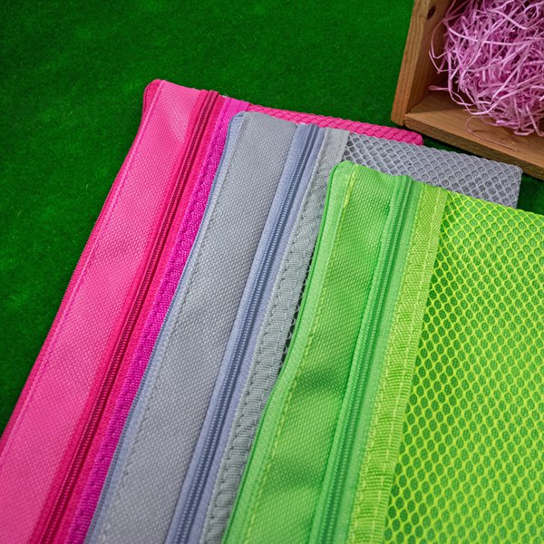 雙層拉鍊袋(三色)-牛津布材質加尼龍網格-單面單色