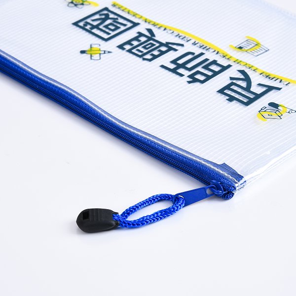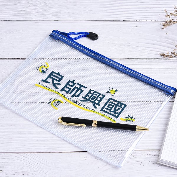 1. PVC網格拉鍊袋,一面網格一面透明,方便查看物品,尺寸為W24xH17公分,適合文件、文具等小物件。