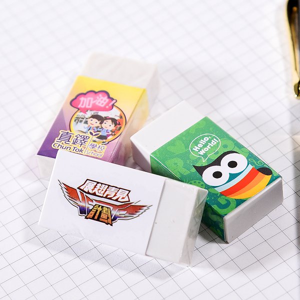 1. 橡皮擦尺寸為4x2x1cm,適合企業禮贈品,可客製化印刷公司標誌或口號。