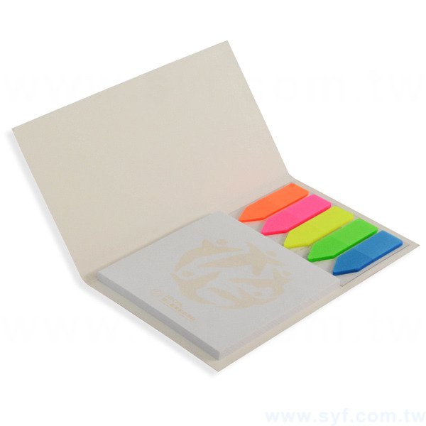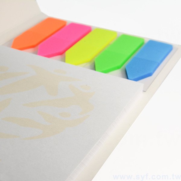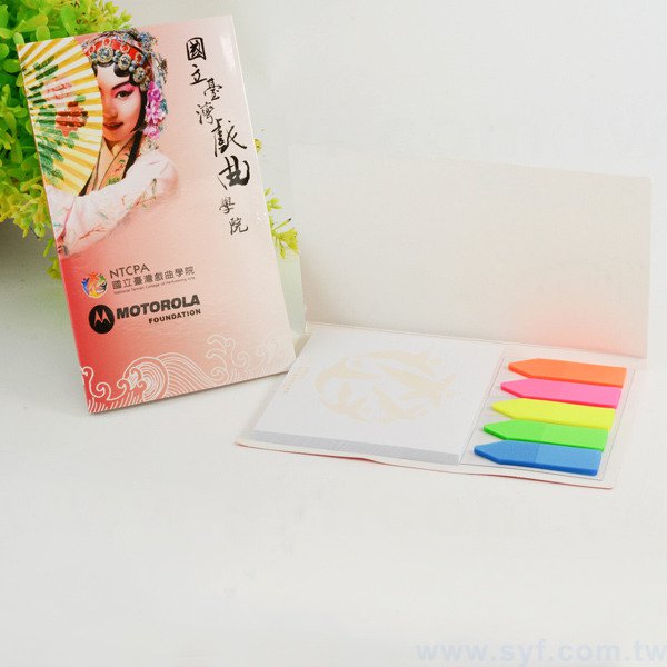 1. 二合一便利貼封面及便利貼可客製化印刷,提升企業形象,內附五色標,重點提醒更明顯。