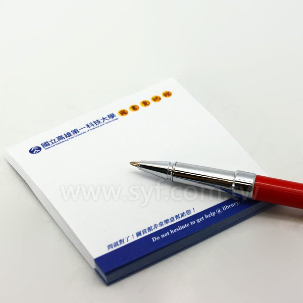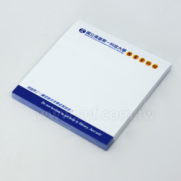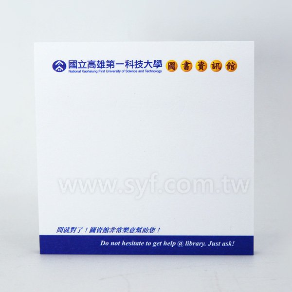 1. 7.5x7.5cm方型便利貼,內頁模造80g、單面/單色印刷,50張內頁規格,尺寸經濟實惠,適合企業禮贈首選。