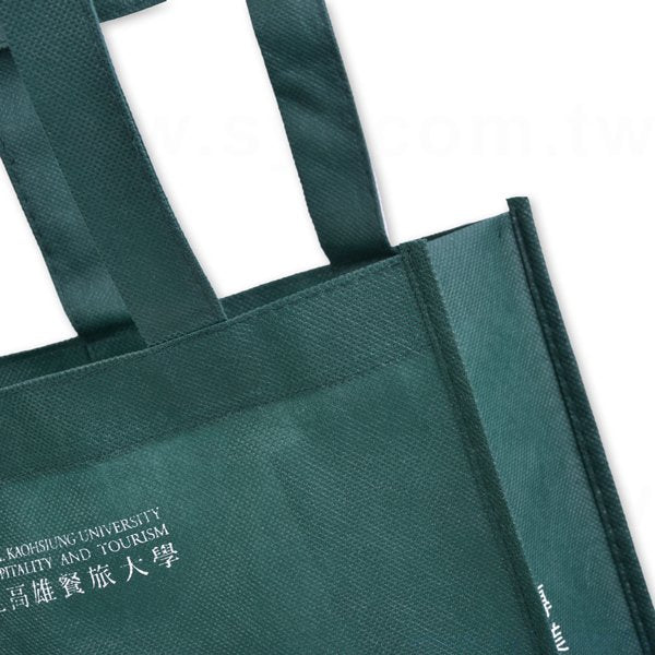 2. 不織布材質厚度80g,尺寸為W22.5xH32xD10cm,提帶長度為2.5x41cm,四面單色印刷。
