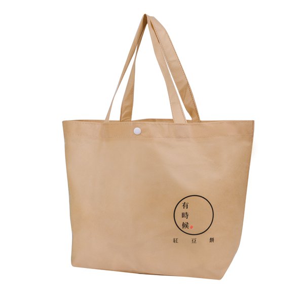1. 不織布環保購物袋,尺寸寬42高27深15公分,可客製化單面雙色印刷,塑膠扣設計,適合企業禮贈品。