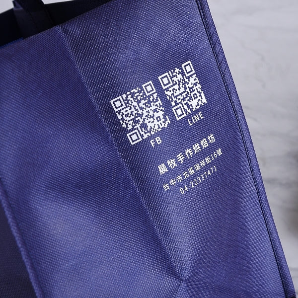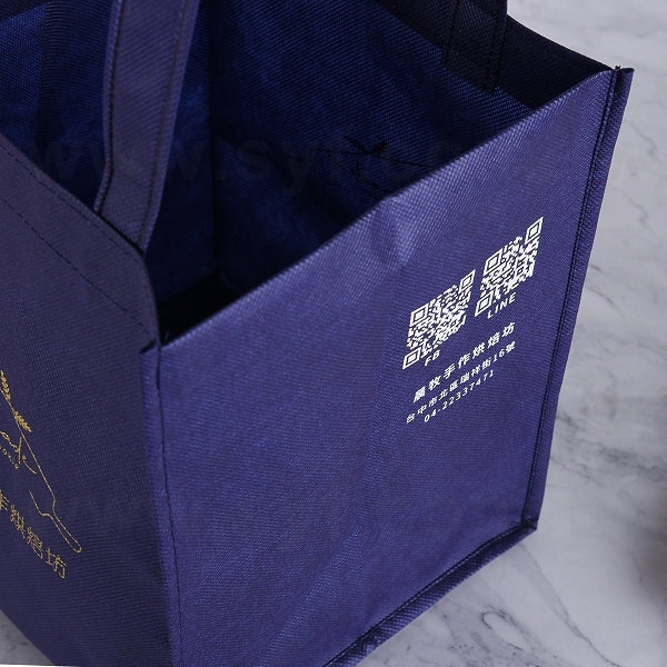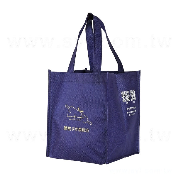 1. 80g厚度不織布環保袋,尺寸為W21xH25xD20公分,提繩2.5x40公分(外露)/2.5x45公分(含車縫),
