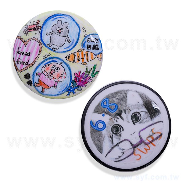 4. 尺寸為58mm,材質為上亮膜/塑膠背,包裝為透明OPP袋裝。