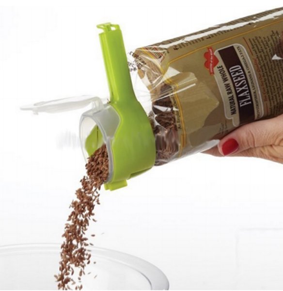 1. 方便倒嘴食物密封夾,尺寸為6*6*13cm,重量輕巧35g,方便攜帶使用。