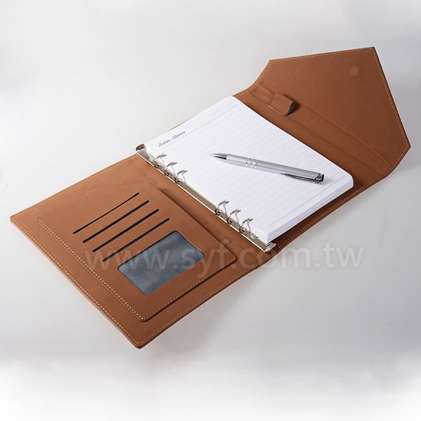 2. 磁扣式活頁PU筆記本,封面PU皮革設計,內頁左三右四,左七右筆記,滿足不同需求。