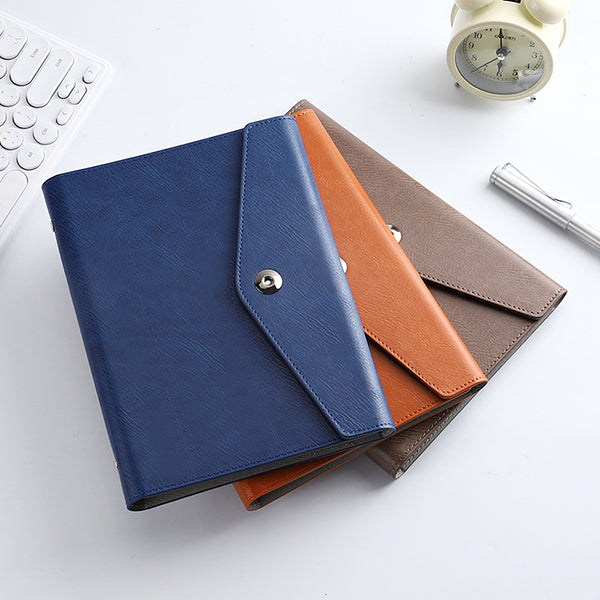 2. 多種顏色可供選擇,包括黑色、棕色、藍色和橘色,滿足不同客戶的需求。三折式活頁設計,方便翻閱和書寫。