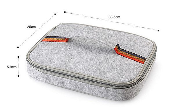 1. 手提保冷袋-羊毛氈-拉鍊式,採用羊毛氈材質,內層鋁箔保持飲料食物清涼,尺寸為27*21*5.5cm,輕巧便攜。