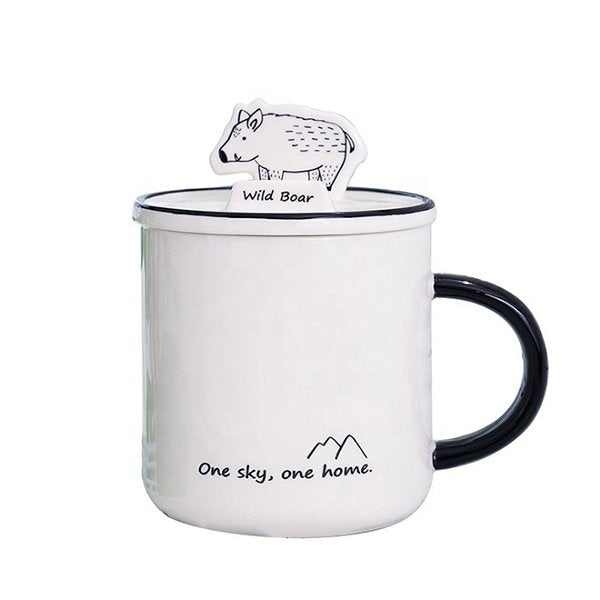 350ml動物陶瓷馬克杯-附手機架杯蓋