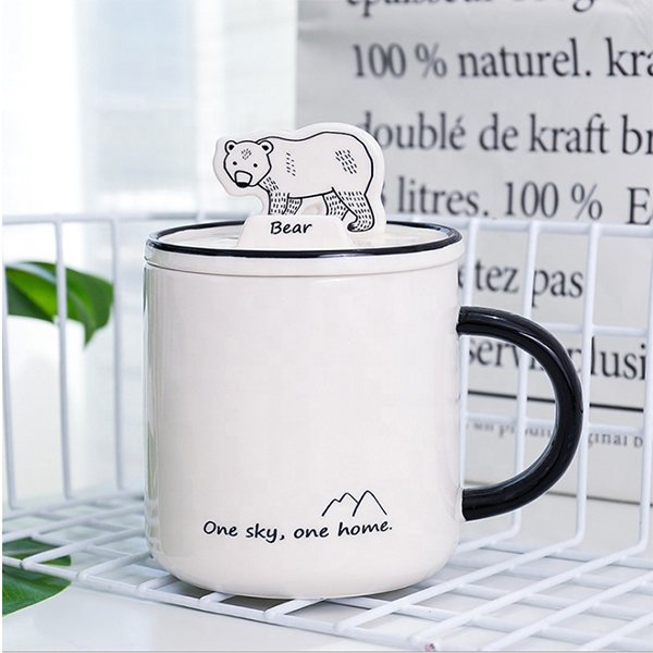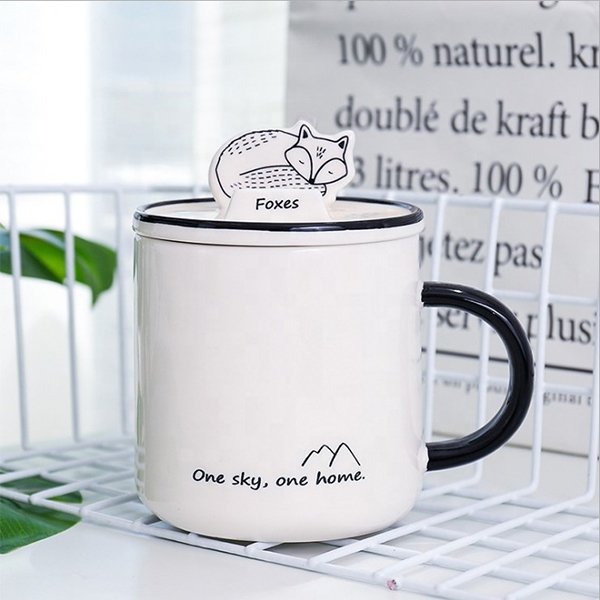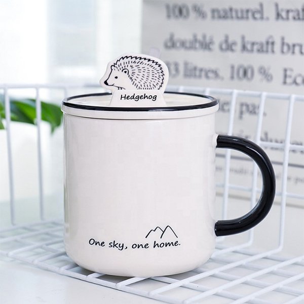 1. 350ml動物陶瓷馬克杯,附手機架杯蓋,材質為高品質陶瓷,容量適中,尺寸為8.7*8.5cm,適合日常使用。