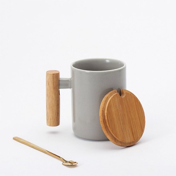 1. 獨特設計的350ml竹蓋木把手陶瓷馬克杯,附湯匙方便攪拌飲品,適合辦公室使用。環保材質陶瓷