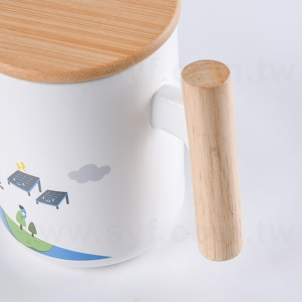 1. 350ml竹蓋木把手陶瓷馬克杯,外觀精美,適合辦公室使用,讓您享受熱茶或咖啡。