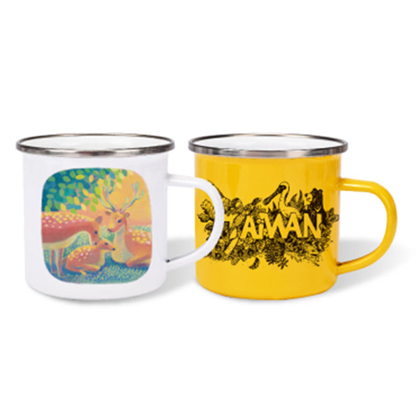 平口馬克保溫杯-白色/黃色搪瓷杯約250ml-可客製化印刷logo