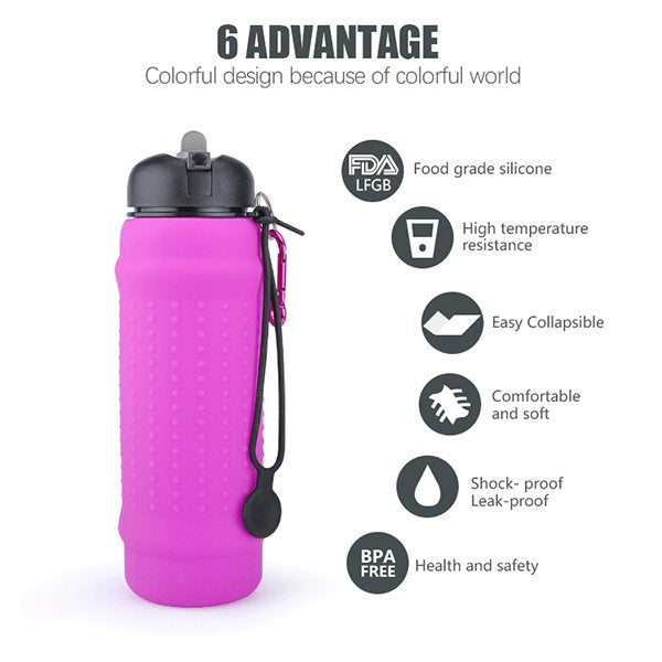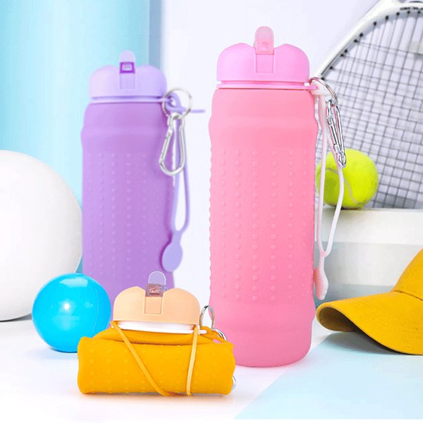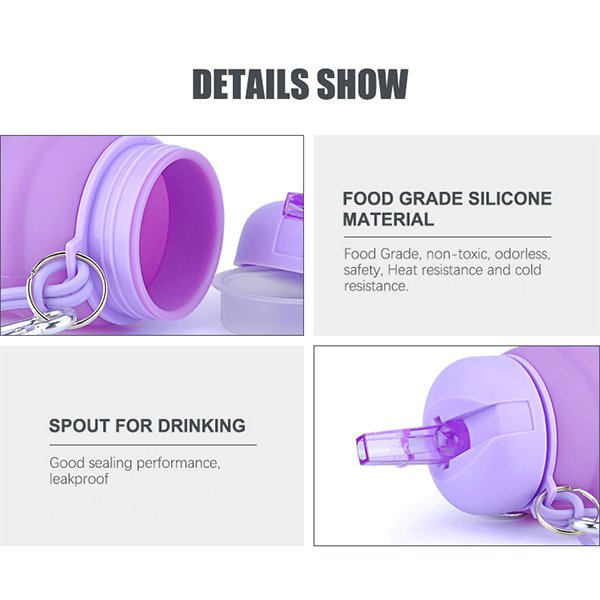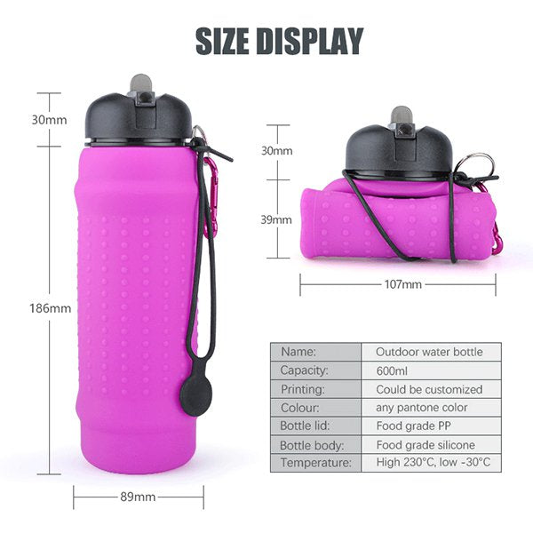 650ml登山扣可摺疊水壺-食品級有機矽膠水瓶