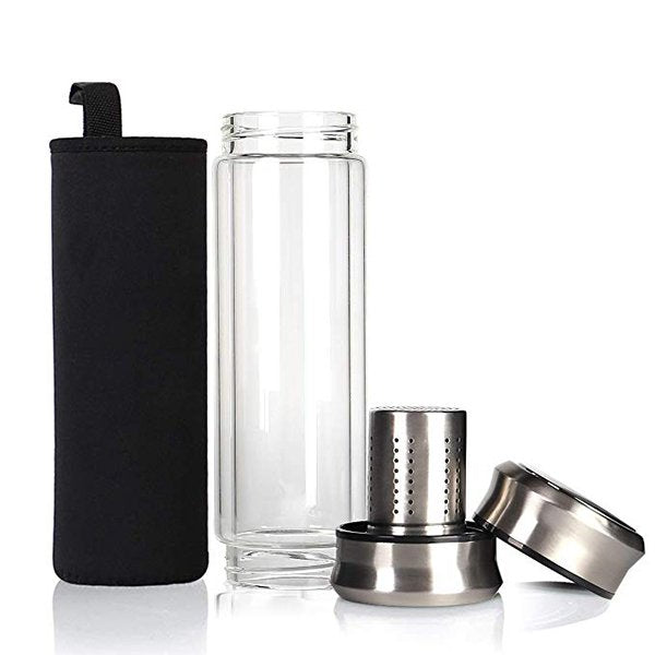 380ml雙層不倒翁玻璃杯-附濾茶器