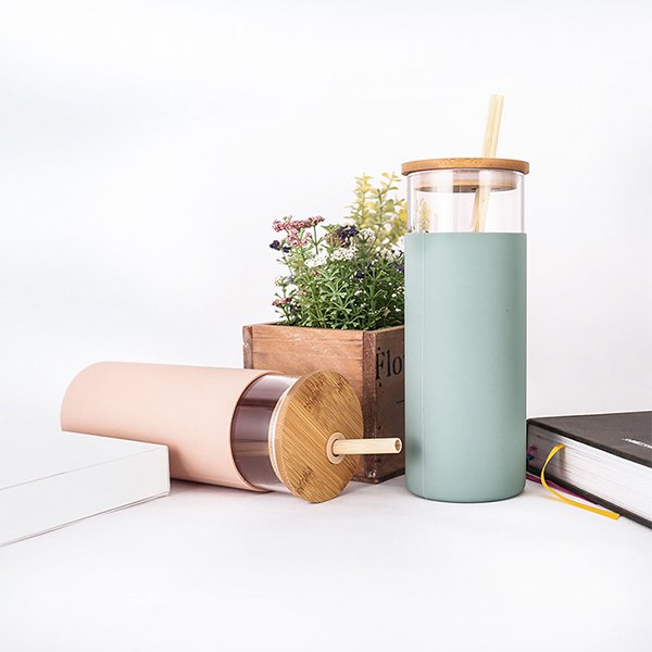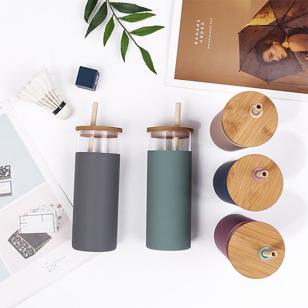500ml莫蘭迪色系杯套玻璃杯-附竹蓋+竹吸管