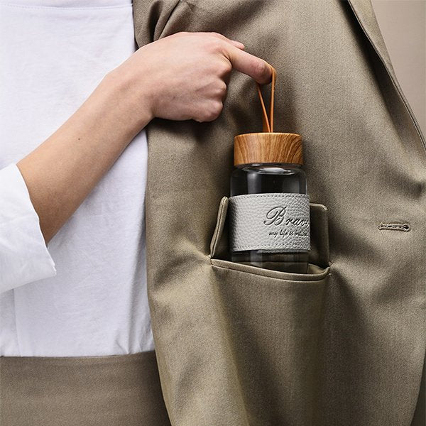 1. 時尚簡約設計,適合辦公室使用。PU皮革杯套,舒適防滑防燙。清晰透明玻璃材質,飲料色澤一目了然。剛好300ml容量,適合裝茶、咖啡或果汁。商務禮贈的不二之選。