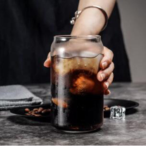 1. 480ml木蓋玻璃吸管杯,源自經典啤酒容器,倒唇設計讓飲料更香氣濃郁,適合各種飲品品嚐。、