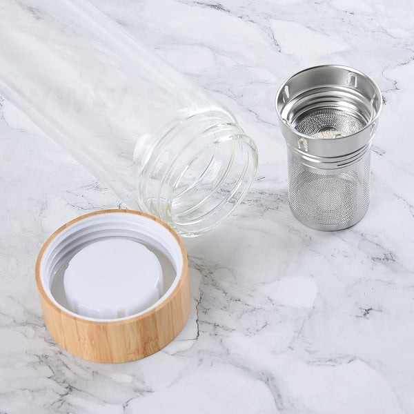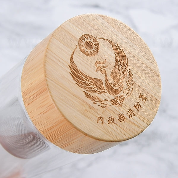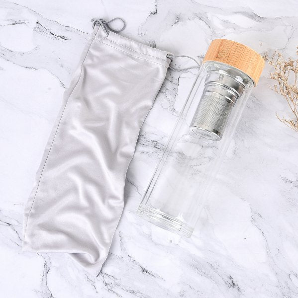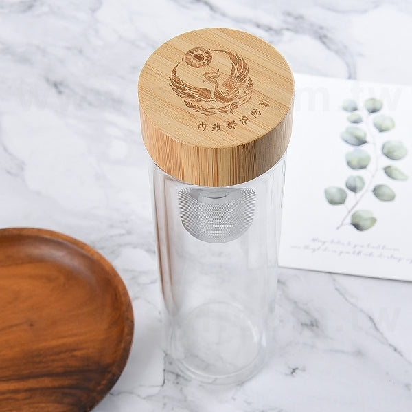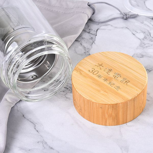 450ml竹蓋雙層玻璃瓶 | 茶水分離杯 | 附素束口袋 (客製化印刷LOGO)