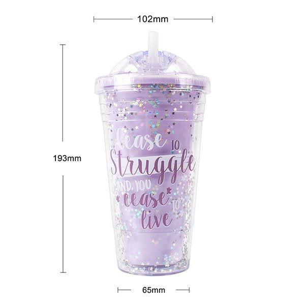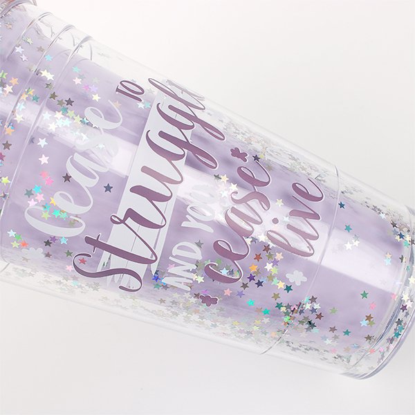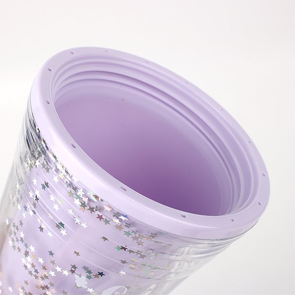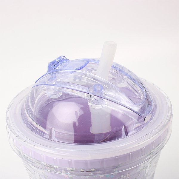 480ml塑膠吸管杯-雙層圓頂蓋星星亮片吸管杯