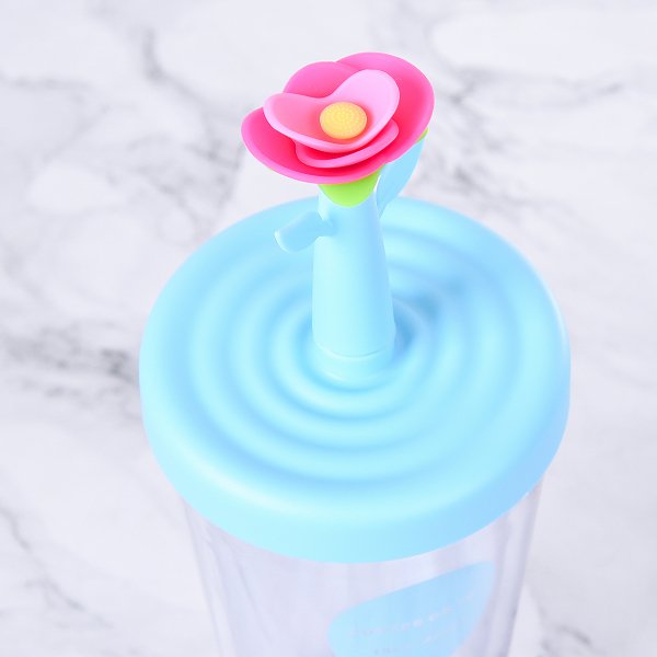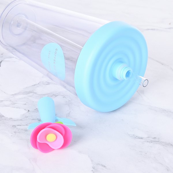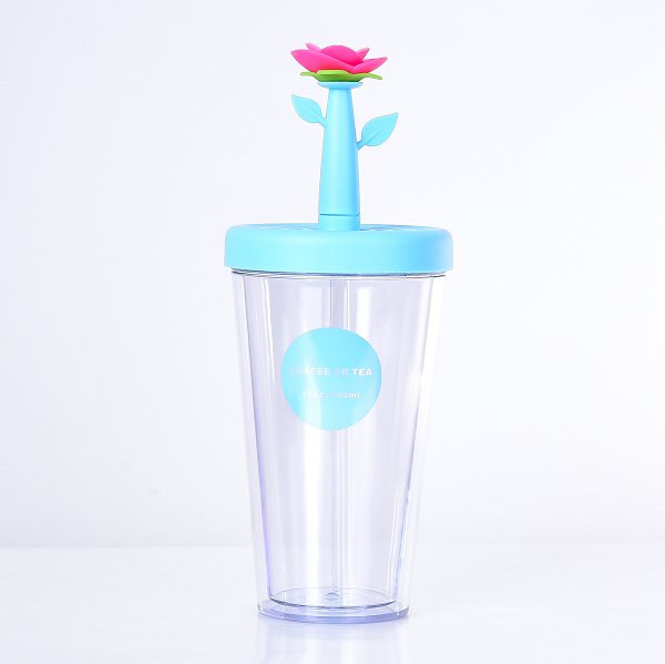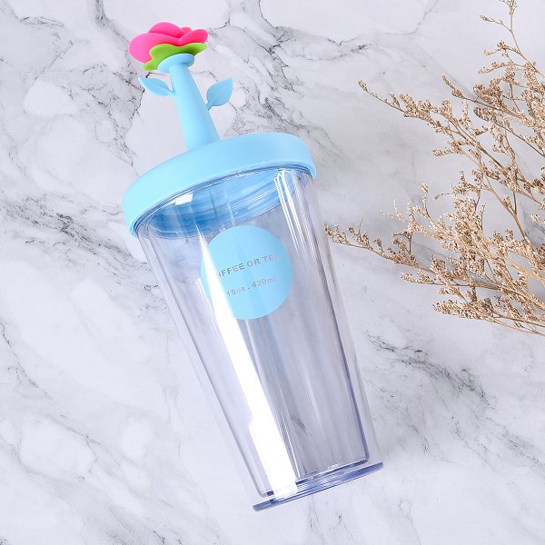 420ml塑膠吸管杯-花朵防漏雙層杯