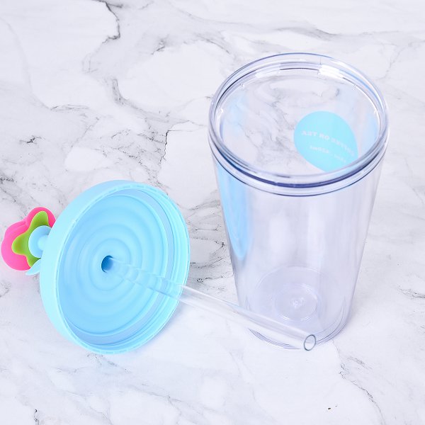 1. 420ml塑膠吸管杯具有防漏雙層設計,讓您隨時隨地享受飲料。