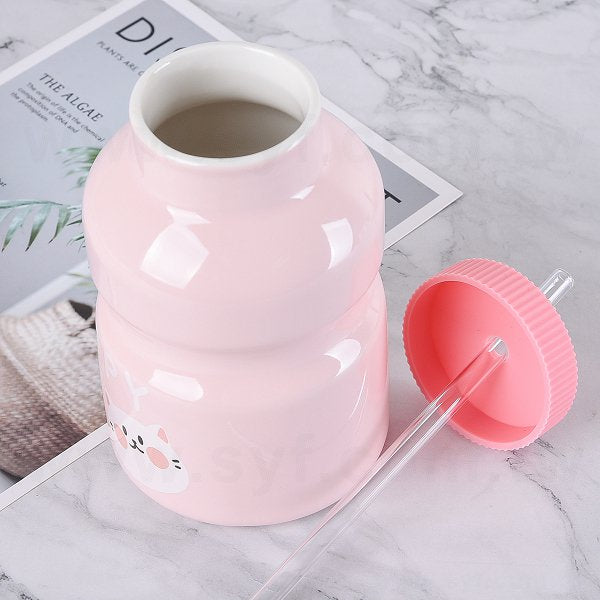 4. 造型陶瓷吸管杯外觀可愛獨特,吸管設計方便飲用,讓您輕鬆享受飲品。