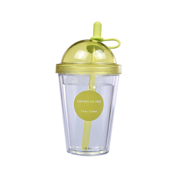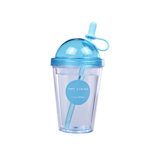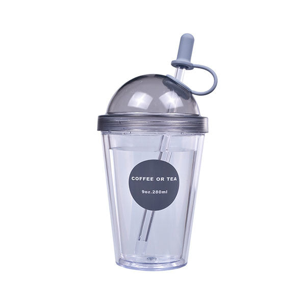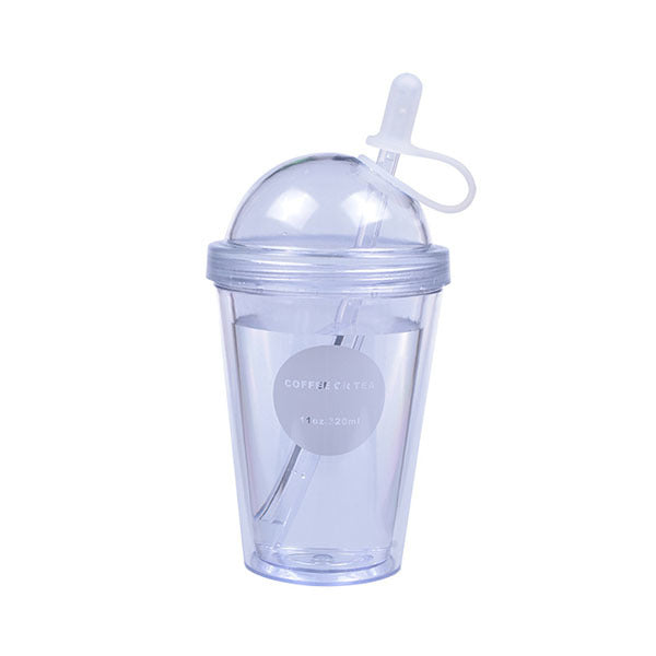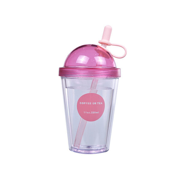 320ml雙層塑料杯-圓弧蓋吸管杯