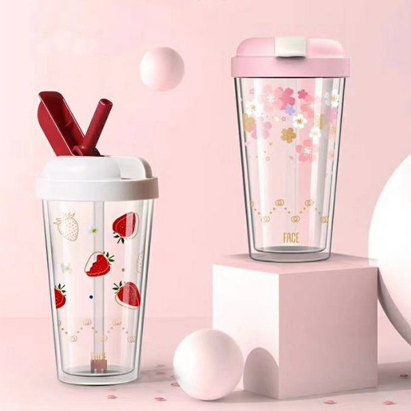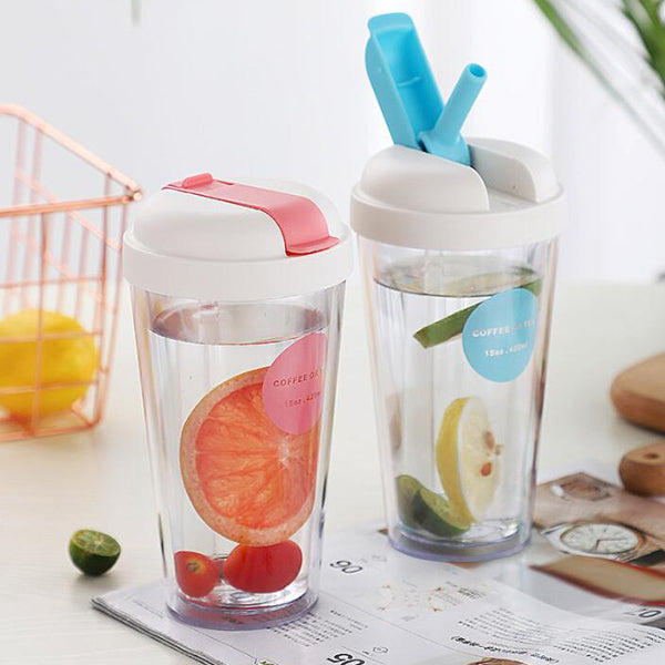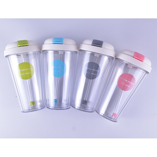 1. 420ml雙層掀蓋式吸管杯,適合辦公室、家庭使用。