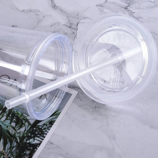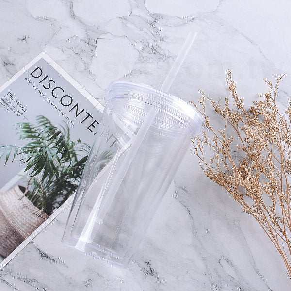 450ml廣告杯吸管杯-雙層設計可放PVC片-可印LOGO