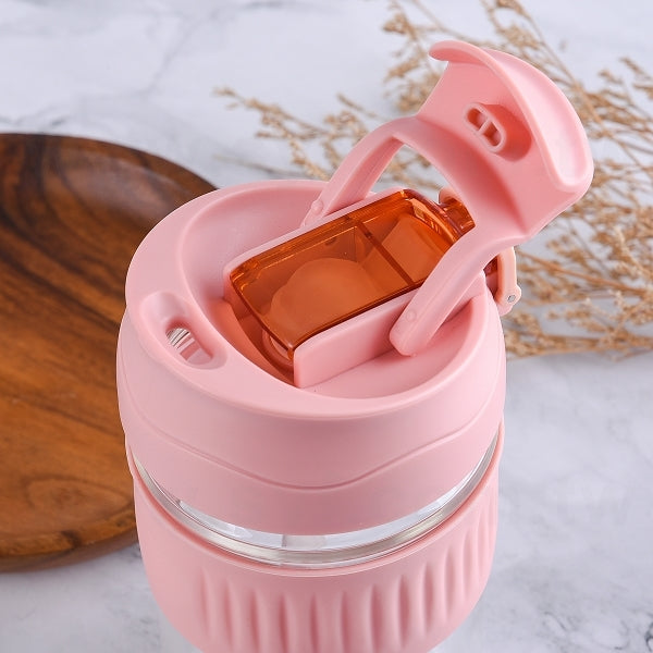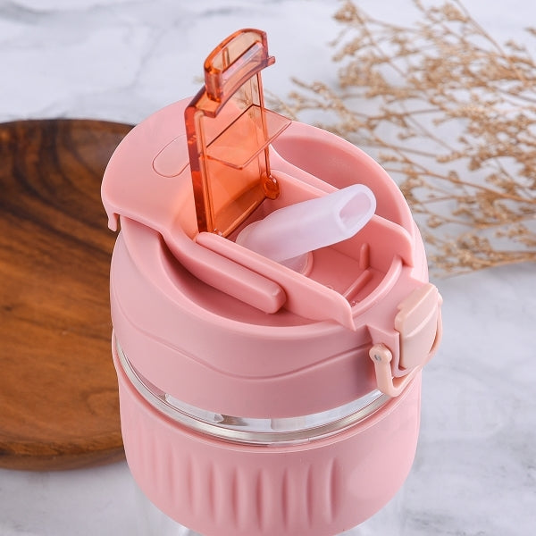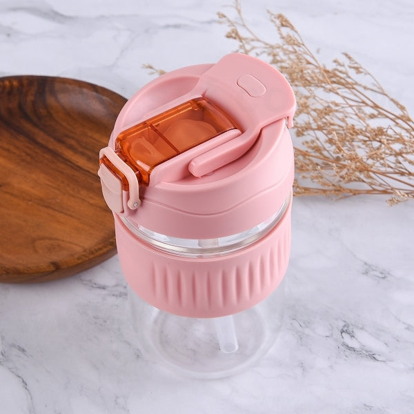 400ml單層彈蓋吸管杯-玻璃材質-雙飲設計-登山扣設計