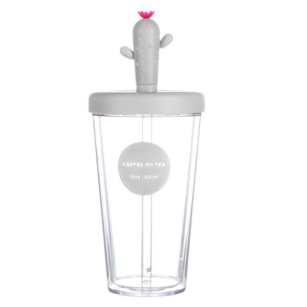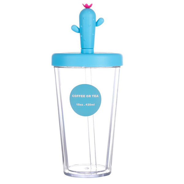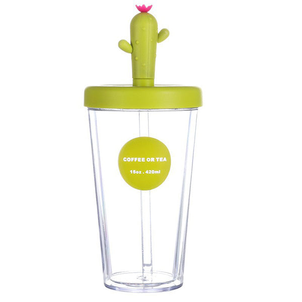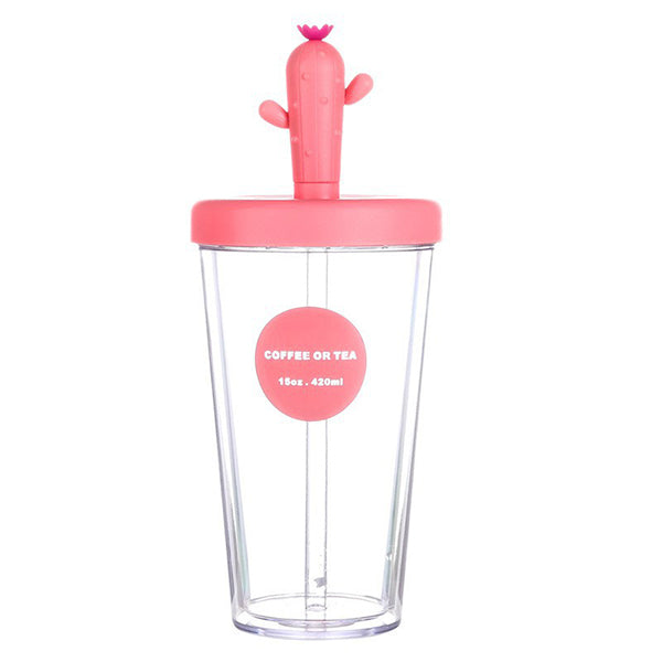 420ml仙人掌造型420ml雙層塑料吸管杯-可印LOGO