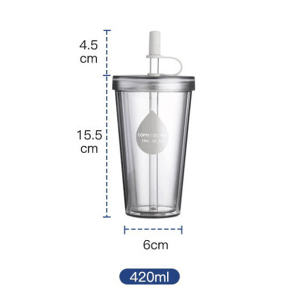 1. 420ml雙層AS.Silicon.Tritan吸管杯,尺寸為6*20cm,容量達420ml,給您充足的飲品空間。