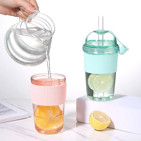 520ml防滑握套吸管杯-吸管塞可塞杯口