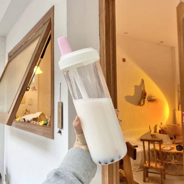 客製化 500 850 毫升可重複使用皮套透明塑膠珍珠奶茶飲用瓶杯附吸管蓋