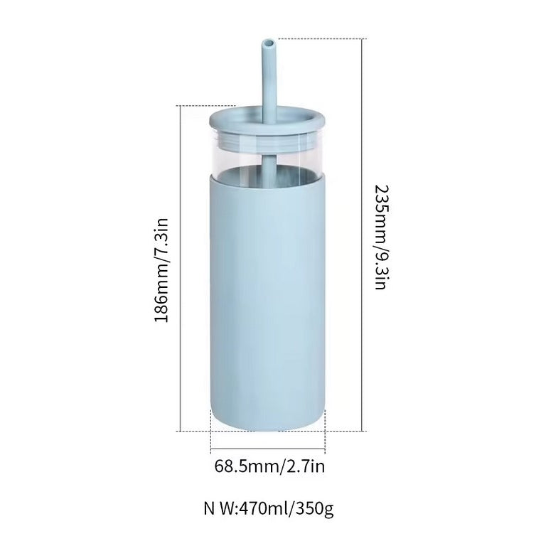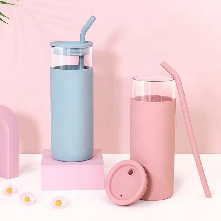 470ml新款熱銷玻璃飲用水瓶帶矽膠套大容量便攜式吸管咖啡杯帶蓋和吸管