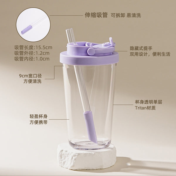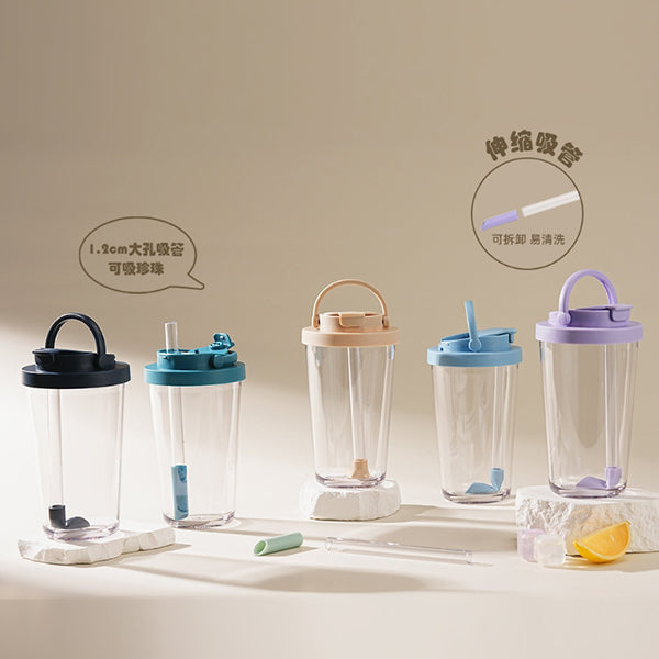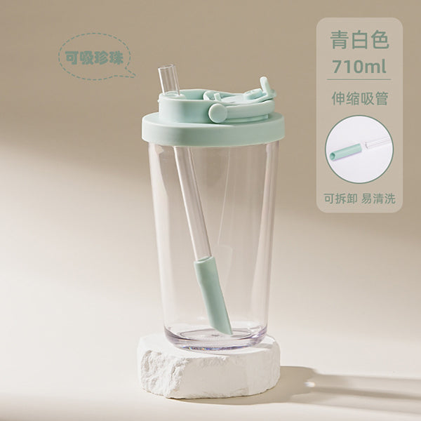 710ml吸管杯-Tritan大孔可吸珍珠奶茶杯伸縮吸管水杯