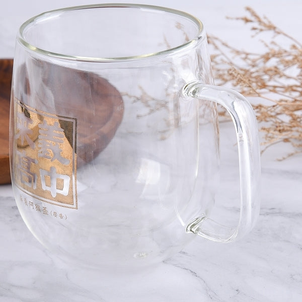 350ml防燙手把蛋形雙層玻璃杯 (客製化印刷LOGO)