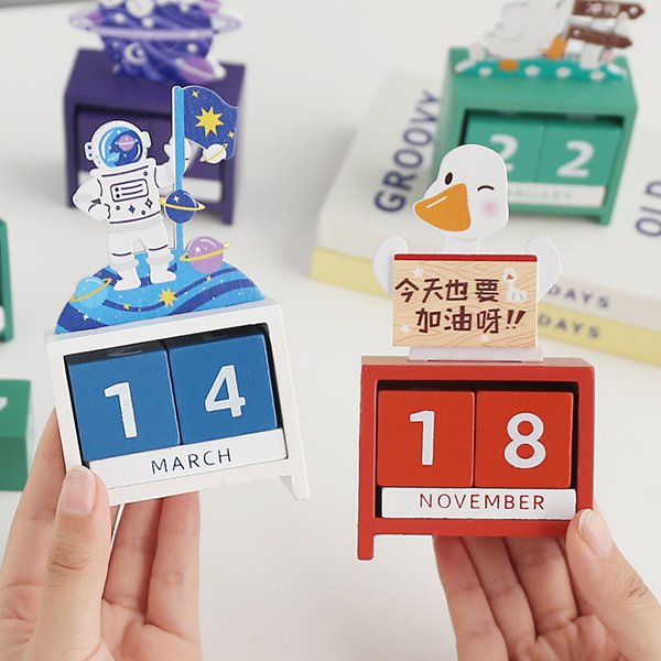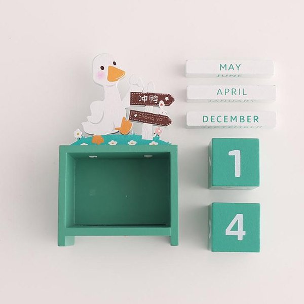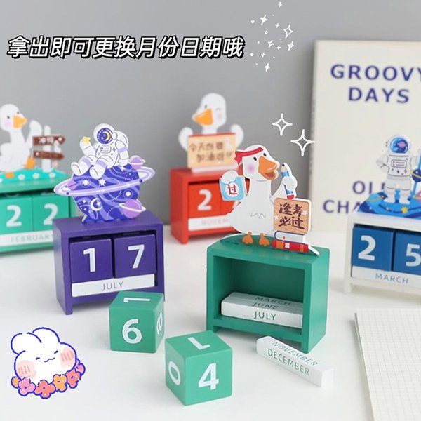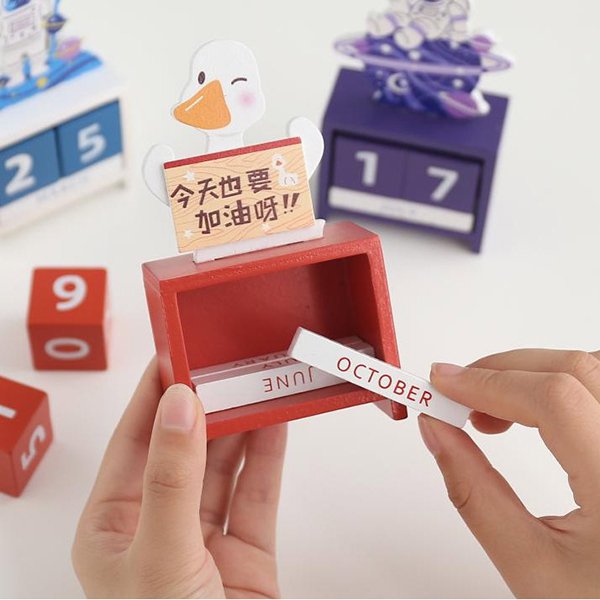 5. 木製加油鴨創意萬年曆,簡約時尚,讓生活更有趣。