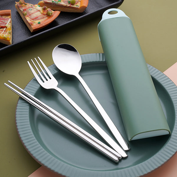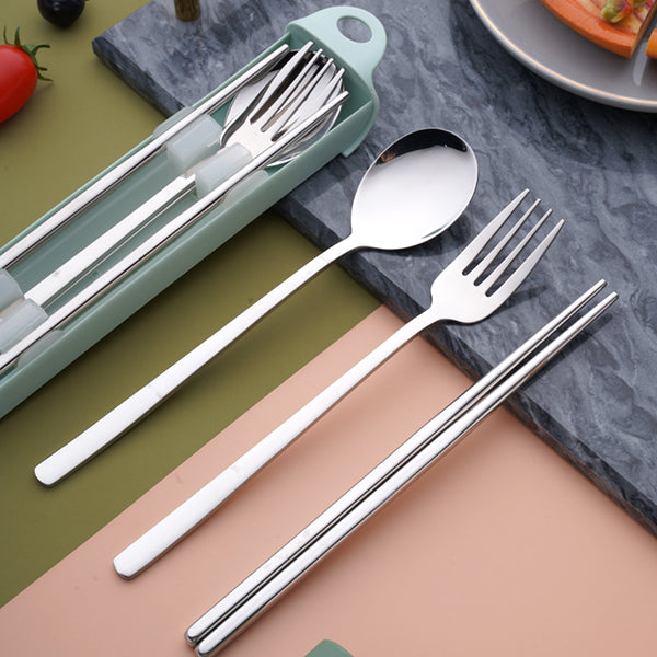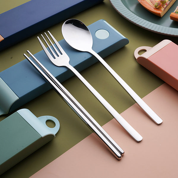- 304不鏽鋼餐具3件組,精緻實用,適合家庭日常用餐或外出野餐。