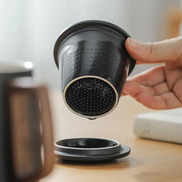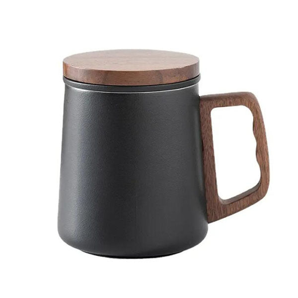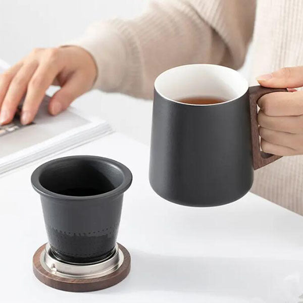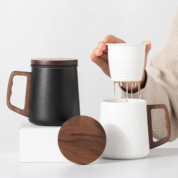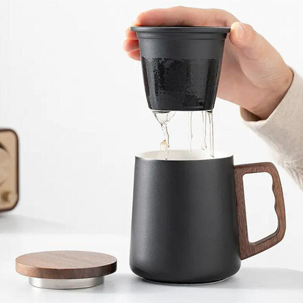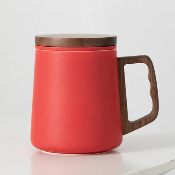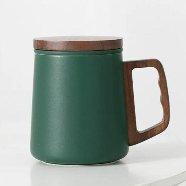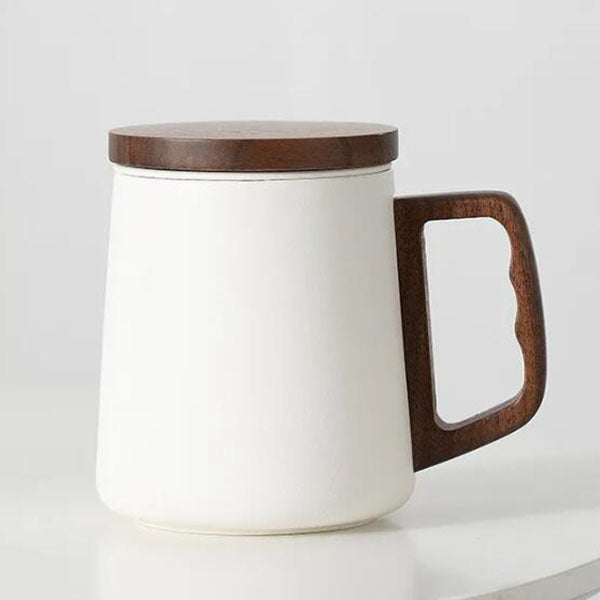420ml竹蓋木把手陶瓷馬克杯-附泡茶濾杯