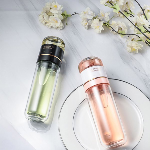 1. 300ml分離式雙層玻璃杯,尺寸為5.7*23.6CM,容量達300ML,適合辦公室、旅行等場景使用。