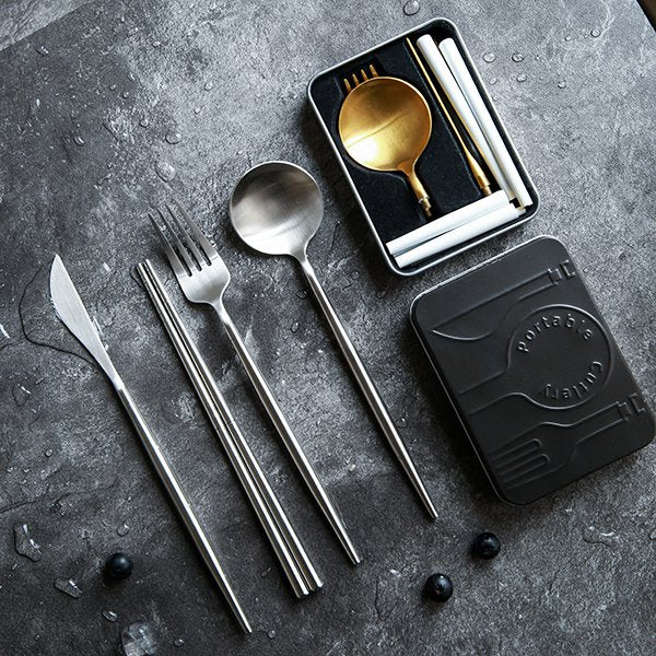 4件組|不鏽鋼餐具|附收納盒(可拆餐具 小巧輕便)