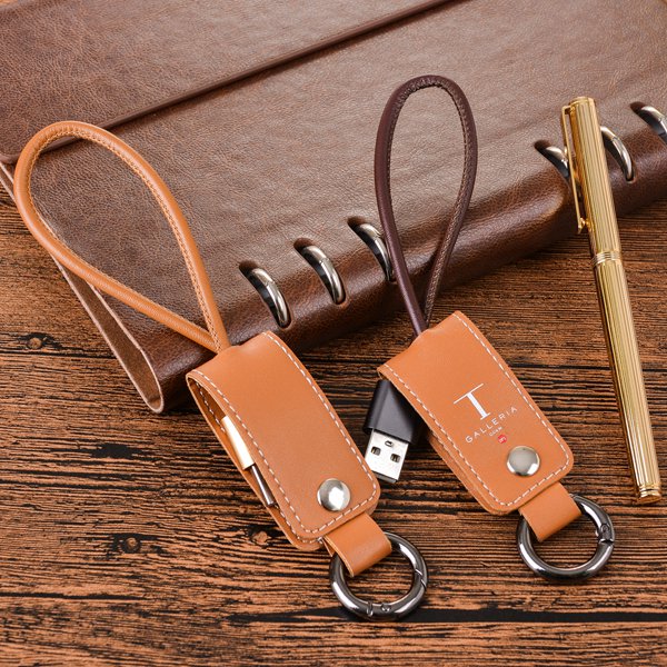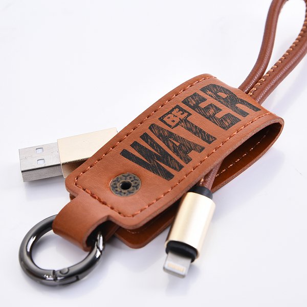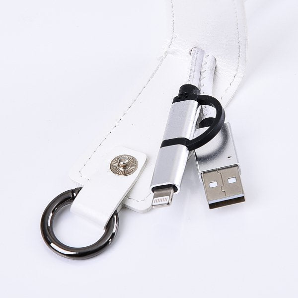 USB傳輸充電線-皮革鑰匙圈-伸縮拉繩