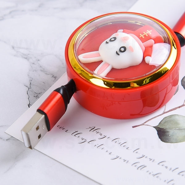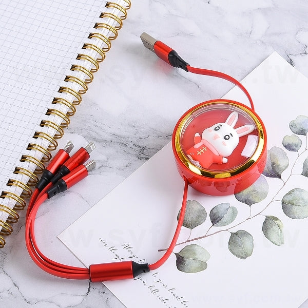 三合一可伸縮傳輸充電線-快充3A-萌兔造型