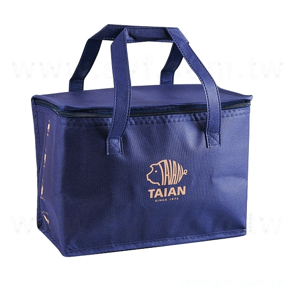 1. 90g不織布保冷袋,尺寸為W31XH22XD16公分,提繩為2.5X50公分,適合搭配客製化LOGO印刷,展示企業形象。