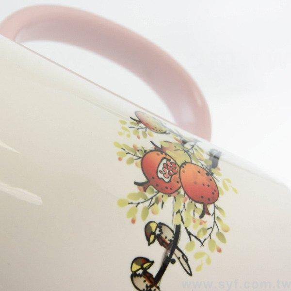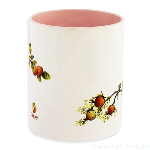 3. 容量350ml,陶瓷材質耐熱110度,顏色為粉紅,印刷尺寸為8*18cm。
