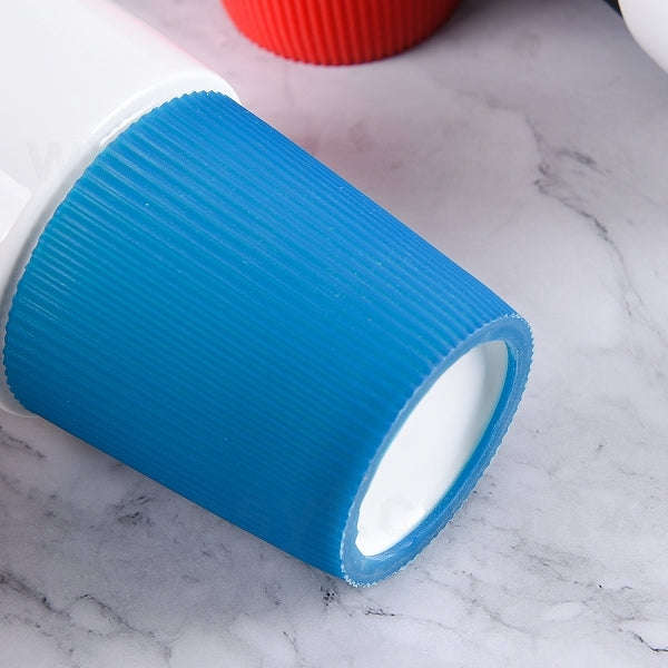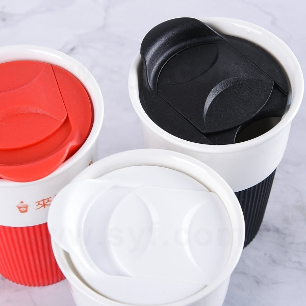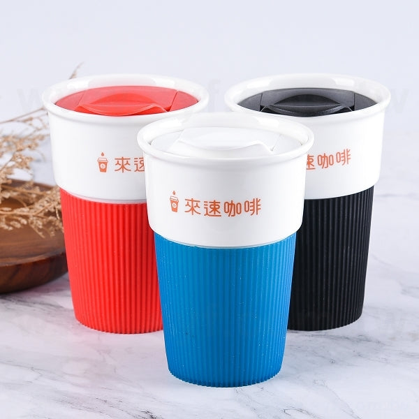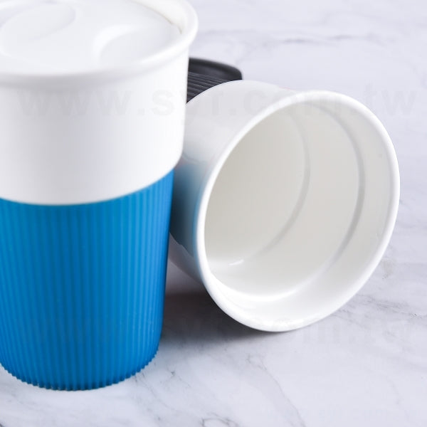 陶瓷馬克杯-400ml-矽膠杯套+矽膠杯蓋-可印LOGO